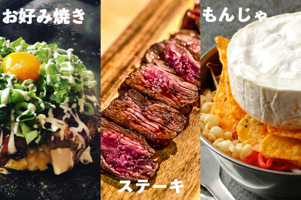 自慢の肉料理から、〆の看板もんじゃまで。