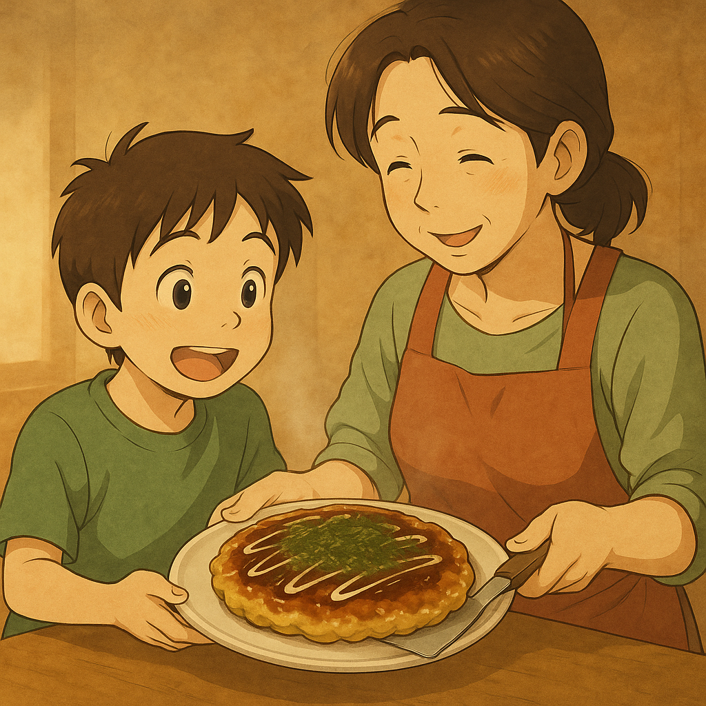 もしかして一番美味しいのは、 お母さんが作ったお好み焼きかもしれません。