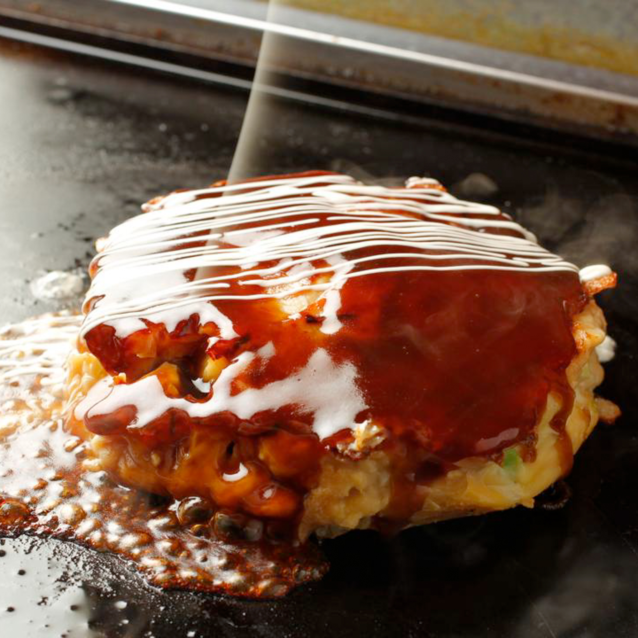 ふっくら焼き上がるお好み焼きは、 ソースを付けなくても、野菜の甘みが十分に味わえます。