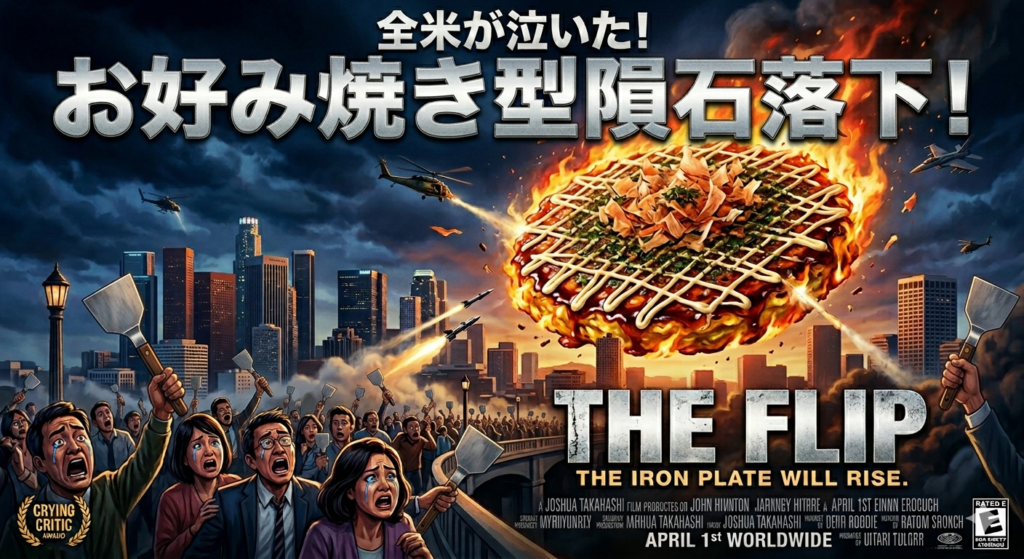 没ネタって、作った本人が一番愛着を持っているんですよね。特に「THE FLIP」は我ながら傑作だと思っています。ヘラで隕石をひっくり返す、これ以上ないストーリーじゃないですか。しかも「ひっくり返す」「どんでん返し」「正気を失う」と三重の意味まで込めました。誰か映画化してくれないかな。予算さえあれば。来年のエイプリルフールも全力で考えます。どうぞお楽しみに!