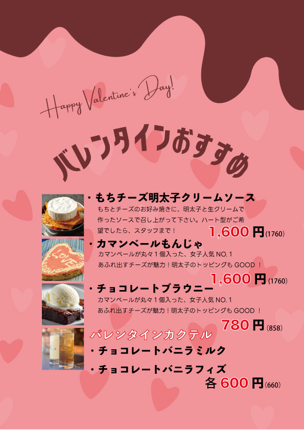 バレンタインおすすめメニュー