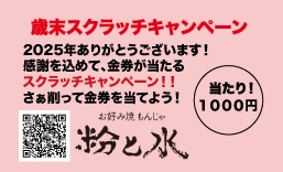 昨年12月、粉と水へご来店いただいた際に配布した**「歳末スクラッチキャンペーン」**。