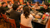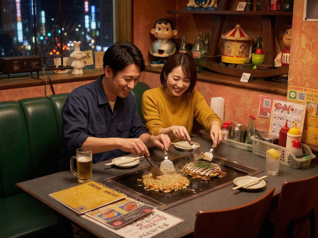 鉄板の前に座ると、自然と会話が生まれます。