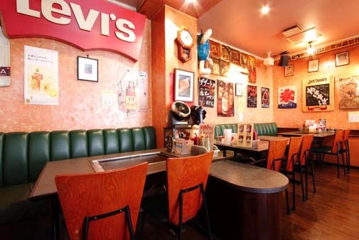粉と水は、鉄板テーブルが4人席・6人席と分かれています。