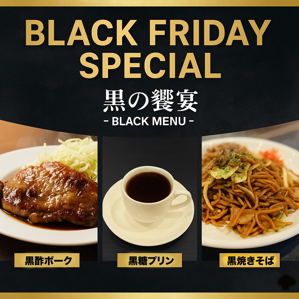 この「黒の饗宴 – BLACK MENU -」は、ブラックフライデーにちなんだ期間限定メニューです。