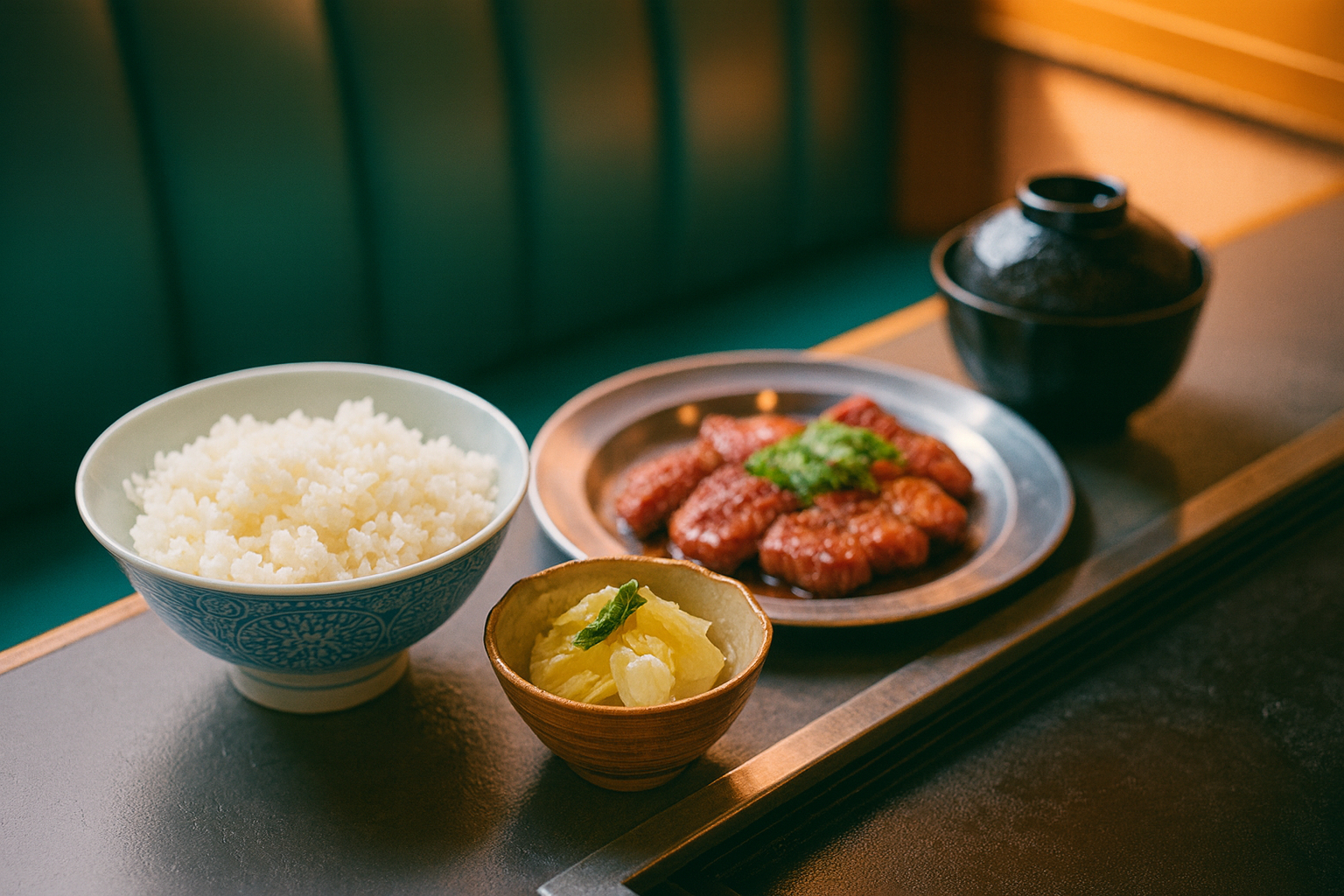 - 内容:特製タレの焼肉 + ご飯 + 味噌汁 + サラダ