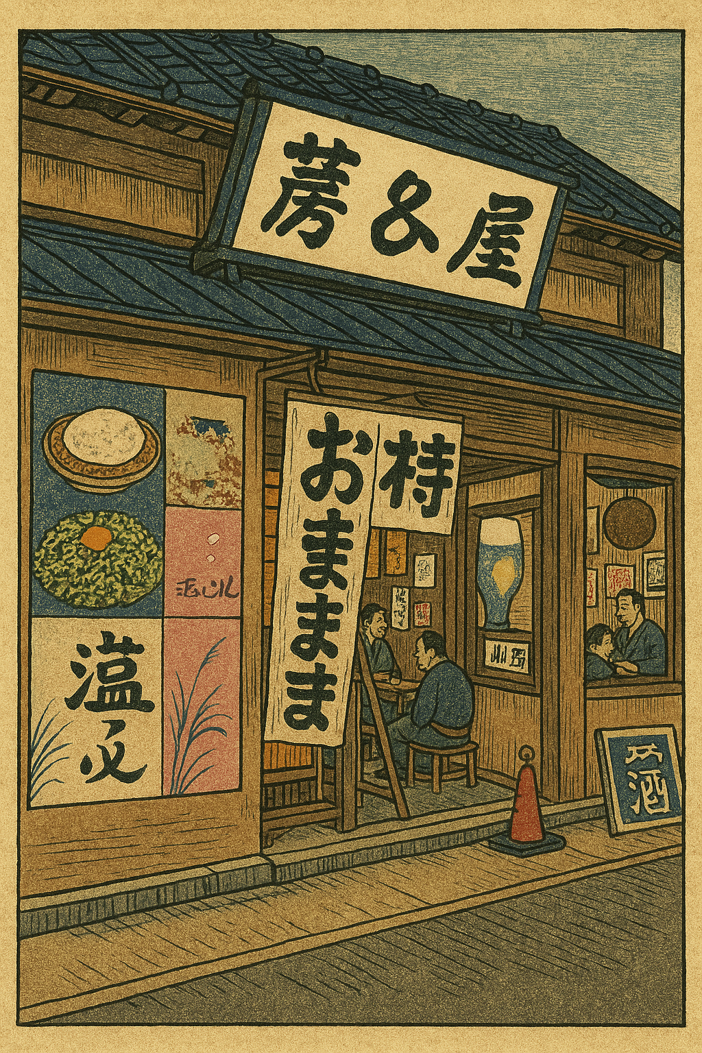 浮世絵の技法で描かれる居酒屋は、 まるで、江戸時代の賑わいを現代に。