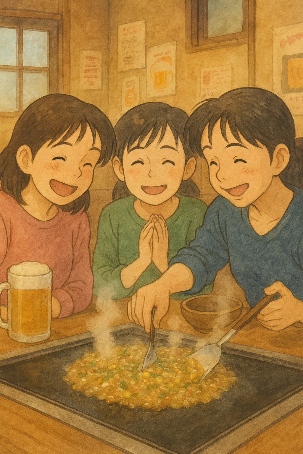 それから、 料理の学校に通い、 もんじゃ屋さんに弟子として働かせてもらい、 お店をオープンさせました。