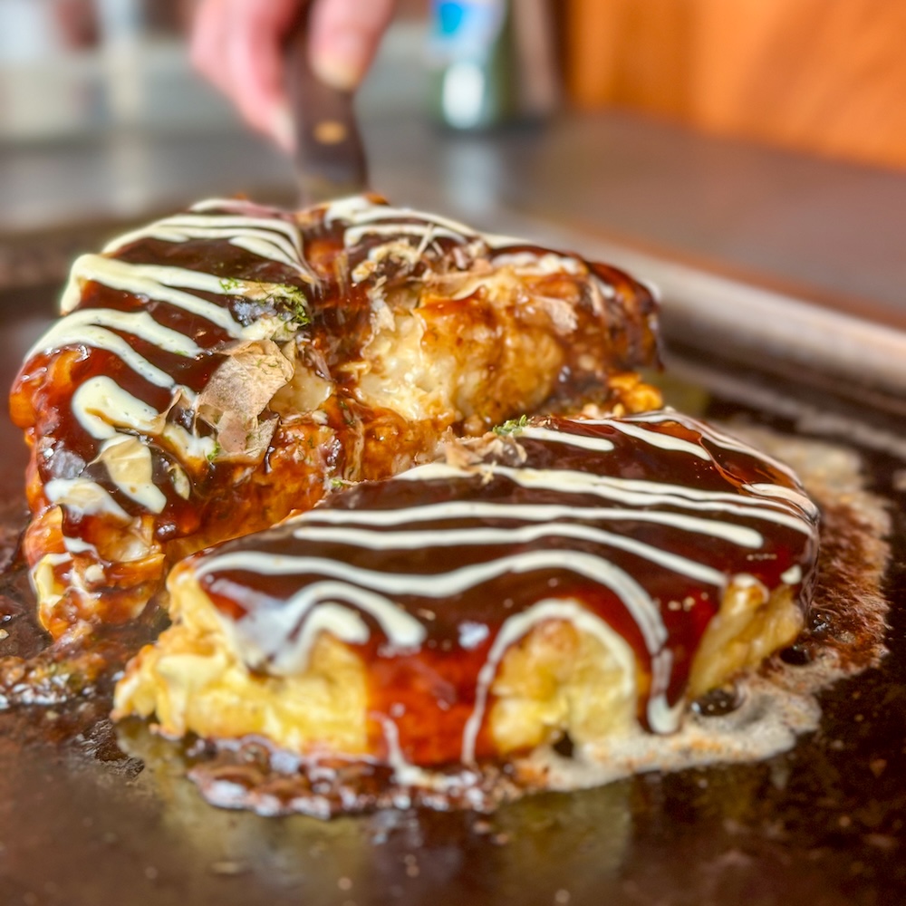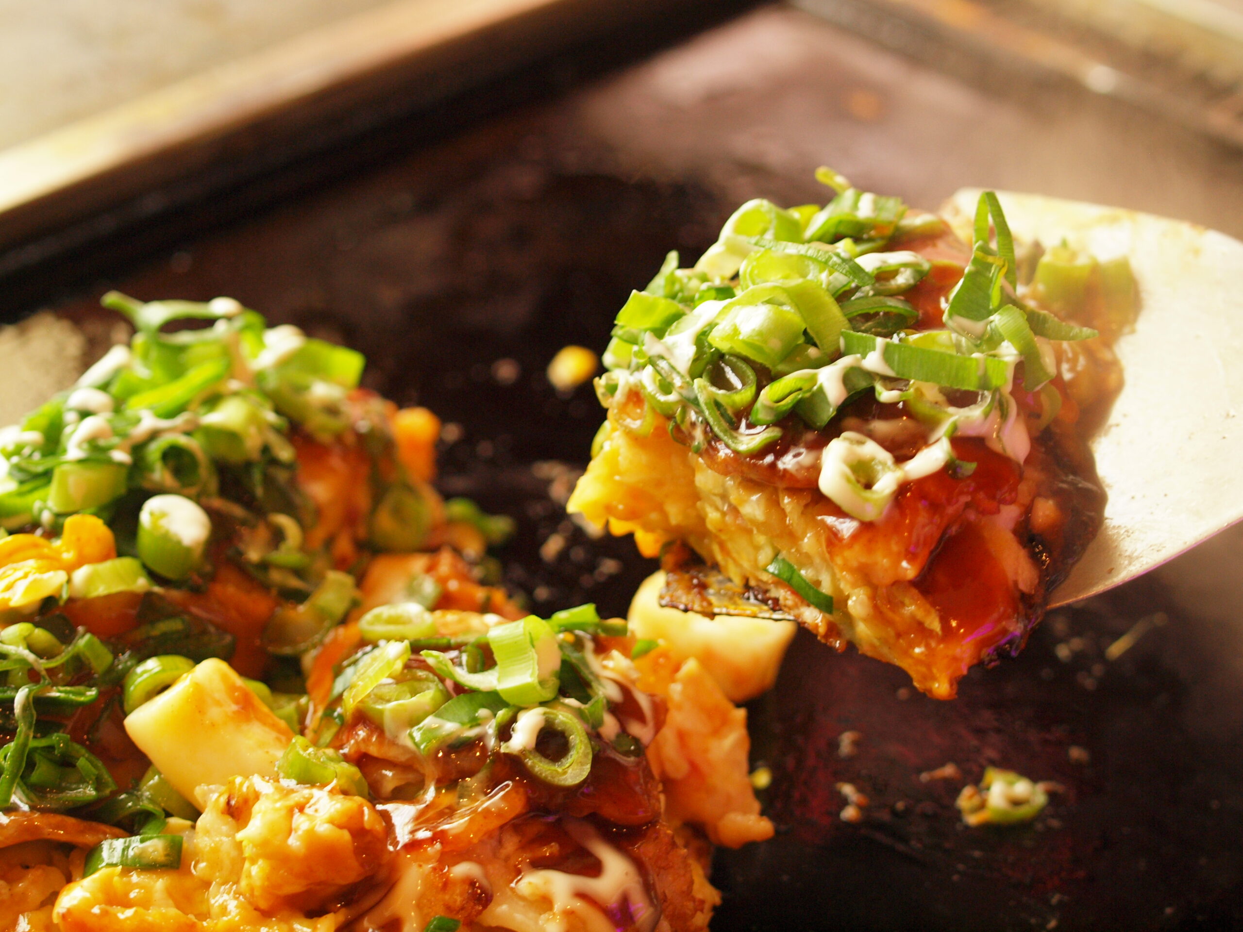 - 海賊の胃袋:エビ・イカ・タコ・ホタテの豪華な海鮮お好み焼き