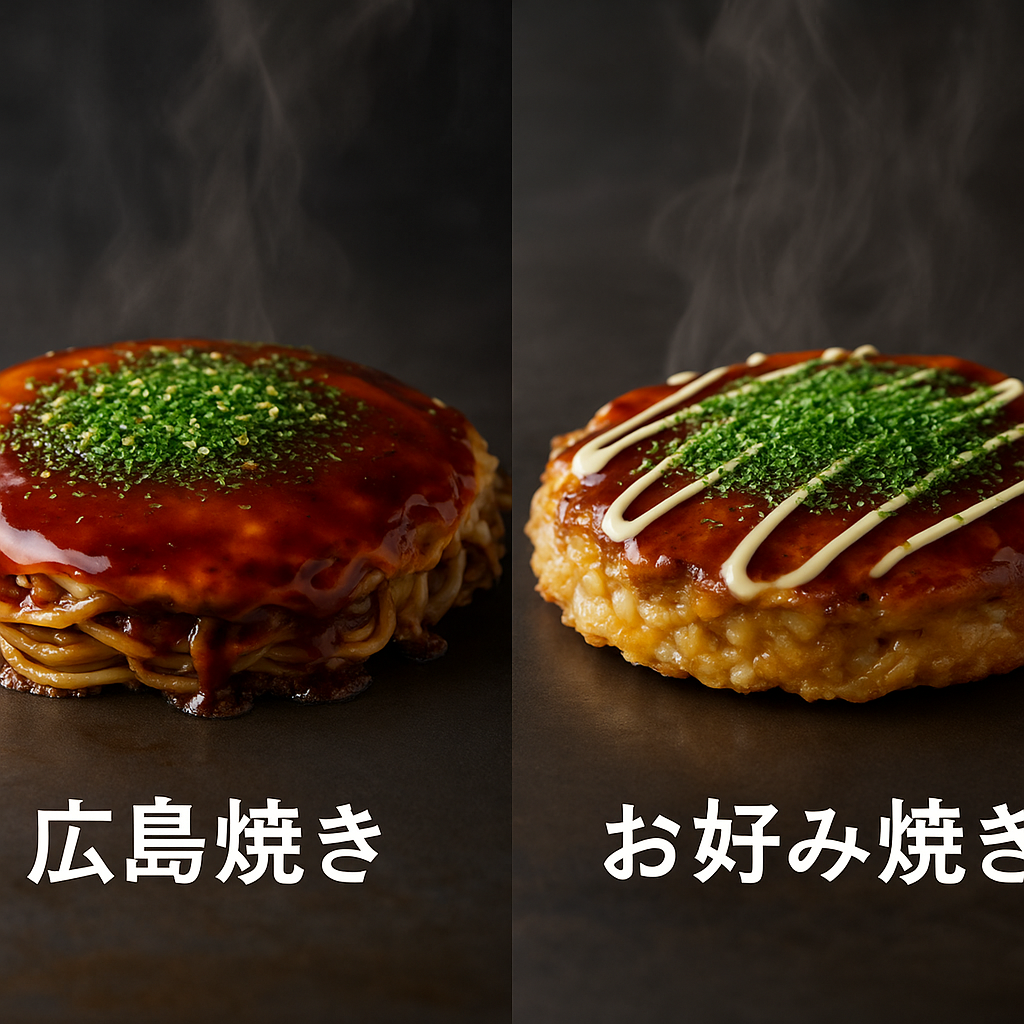広島風は、小麦粉だけを使って生地の部分をクレープ状に焼き、その上にキャベツ・もやし・肉などの具材を重ねて焼いていきます。戦後の食料難の中で、アメリカ軍から支給された小麦粉を有効活用するために独自の進化を遂げました。