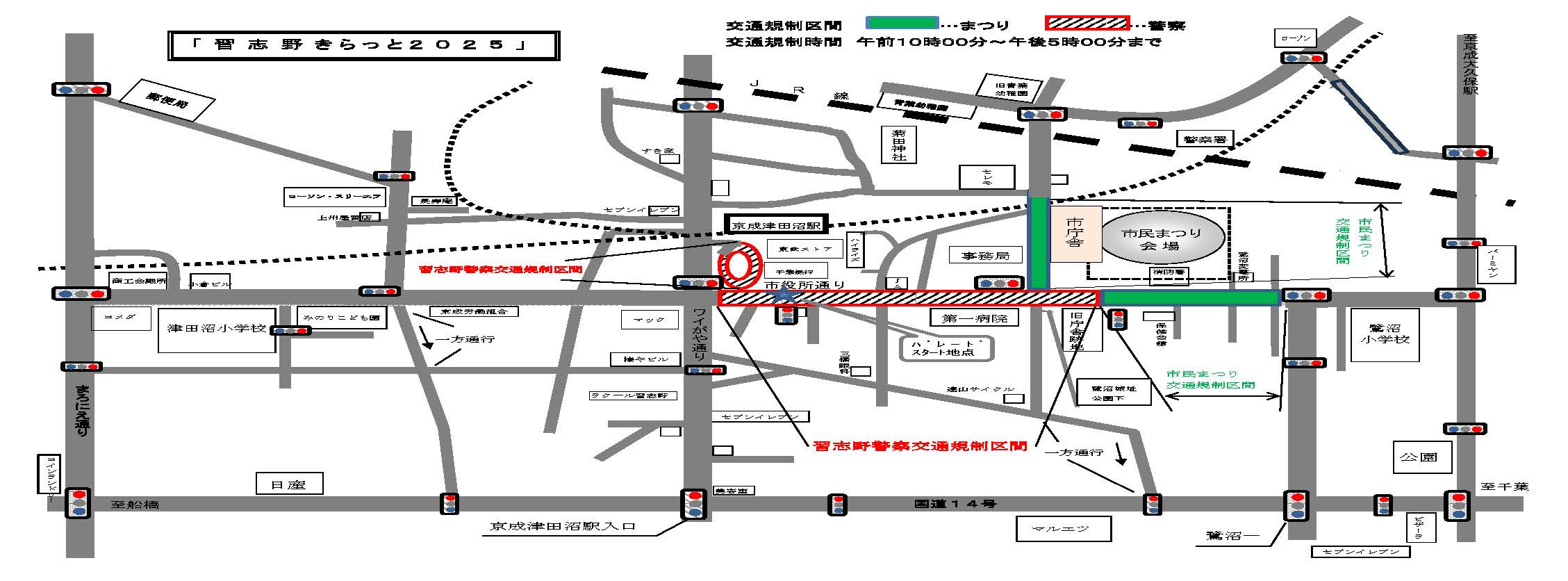 - 京成津田沼駅周辺は10:00〜17:00交通規制