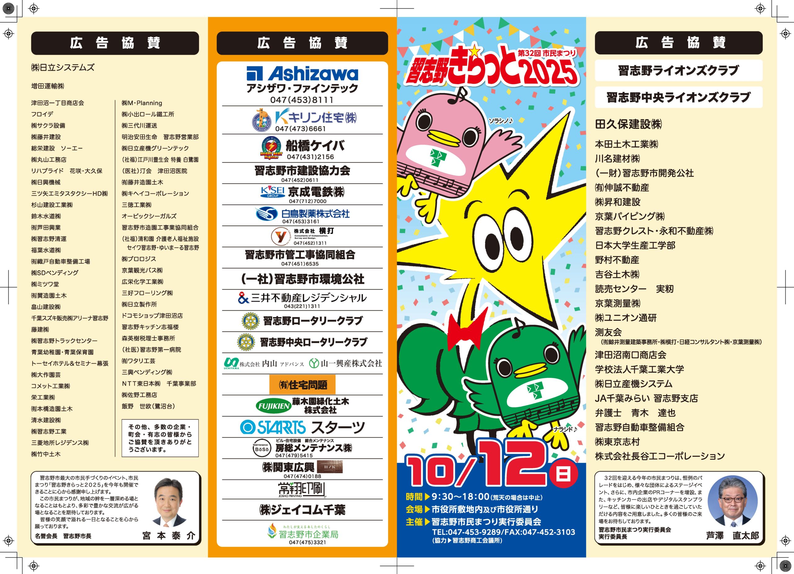 10月12日(日)、お隣の習志野市で「第32回市民まつり きらっと習志野2025」が開催されます。