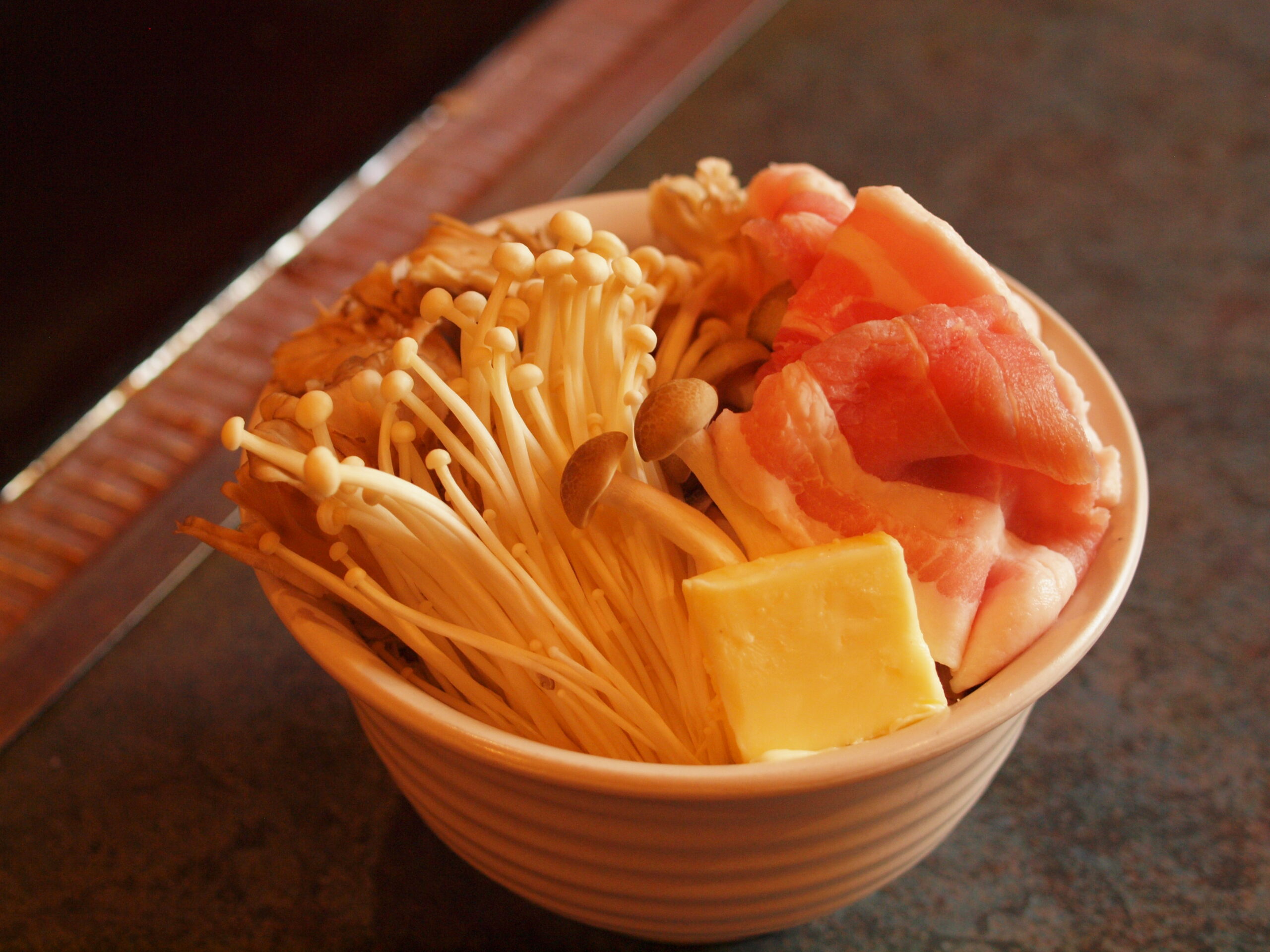きのこバター、きのこのホイル焼き、そして秋限定のきのこ豚玉。