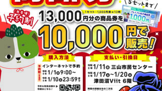 最新情報 【30%還元】津田沼・三山プレミアム付商品券|13,000円分が10,000円で!予約は1/1から|津田沼 粉と水